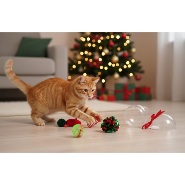 Kedi Oyun Tüneli 117 cmYılbaşı Konseptli 8 Parça Küre İçinde Oyuncak Seti