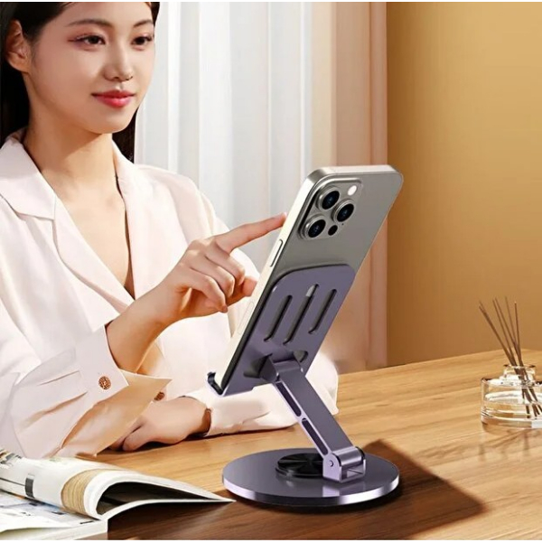 Mor 360° Dönebilir Kompakt Masaüstü Metal Telefon Tutucu