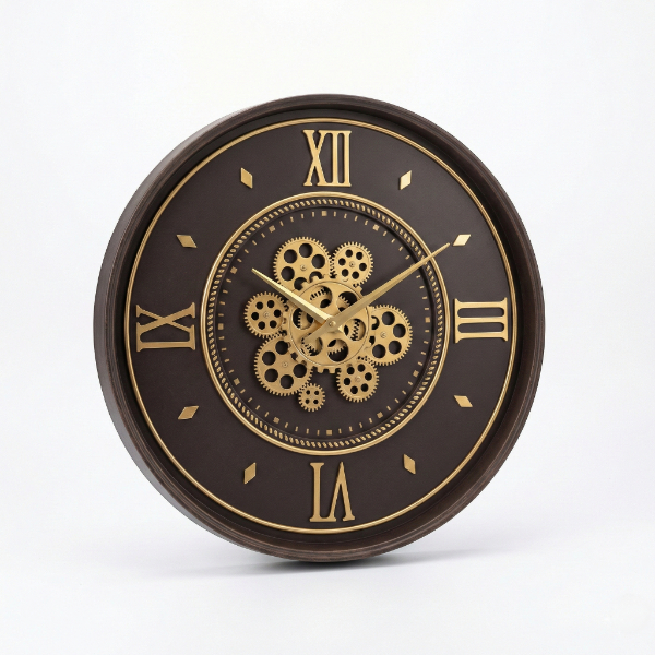 ÇARKLI DUVAR SAATİ 55 CMÜrün Özellikleri55 cm çapındaki çarklı duvar saati, büyük boy ölçüsü ve iç kısmında yer alan detaylı mekanik çark tasarımıyla bulunduğu ortamda güçlü ve dikkat çekici bir dekoratif etki oluşturur. Görselde de net şekilde görülen açık mekanizmalı çark detayı, saate endüstriyel ve vintage tarzı bir karakter kazandırırken, Roma rakamlı kadran yapısı klasik estetik anlayışı modern çizgilerle birleştirir. Altın tonlu çark ve rakam detayları, koyu zeminle kontrast oluşturarak saatin uzaktan bile rahatça okunmasını sağlar. Geniş kadranı sayesinde salon, oturma odası, ofis, kafe, restoran ve loft tarzı mekânlarda dekorasyonun odak noktası haline gelir. Dengeli çalışan saat mekanizması sessiz bir kullanım sunarak yaşam alanlarında konfor sağlar. Sağlam gövde yapısı ve kaliteli malzeme hissi uzun ömürlü kullanım avantajı sunarken, duvara kolayca asılabilen tasarımı ile pratik kurulum imkânı sağlar. Dekorasyonda sıradan saatlerden farklı, prestijli ve karakter sahibi bir ürün arayan kullanıcılar için hem fonksiyonel hem de estetik açıdan güçlü bir tercihtir.