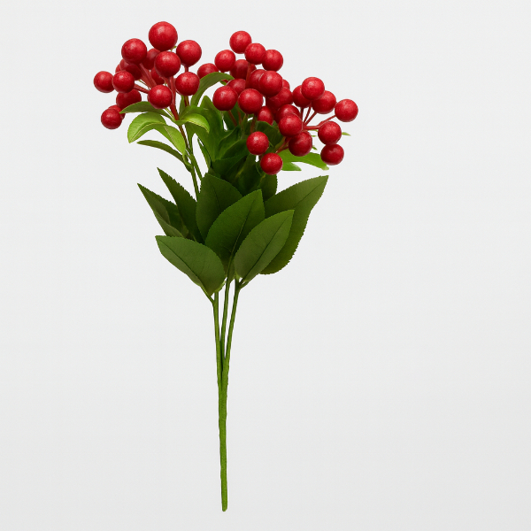 Dekoratif yapay kokina dalı, canlı kırmızı meyve detayları ve doğal görünümlü yaprak yapısı ile yılbaşı dekorasyonlarında ve mevsimlik süslemelerde zarif bir tamamlayıcı olarak kullanılır. 35 cm boyutundaki ideal ölçüsü sayesinde çam ağacı süslemelerinde, masa aranjmanlarında, kapı süslerinde ve hediye paketlemelerinde kolaylıkla yer bulur. Gerçeğe yakın dokusu, dayanıklı yapısı ve formunu uzun süre koruyan kaliteli malzemesi sayesinde tekrar tekrar kullanılabilir. Mekânlara sıcak bir atmosfer katmak isteyenler için estetik ve pratik bir dekorasyon ürünüdür.