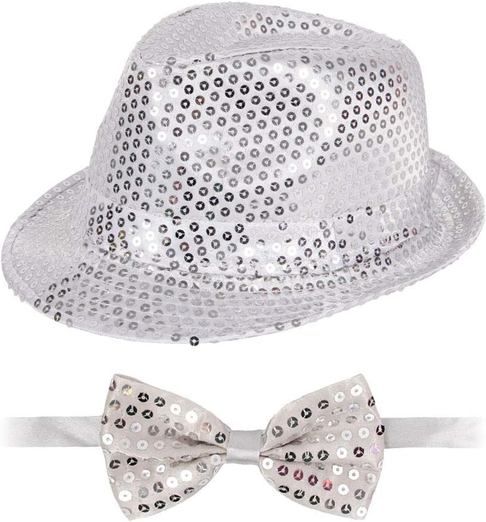 GÜMÜŞ PAYETLİ ŞAPKA VE PAPYON SETİ – PARILTILI YETİŞKİN KOSTÜM SETİÜrün Özellikleri