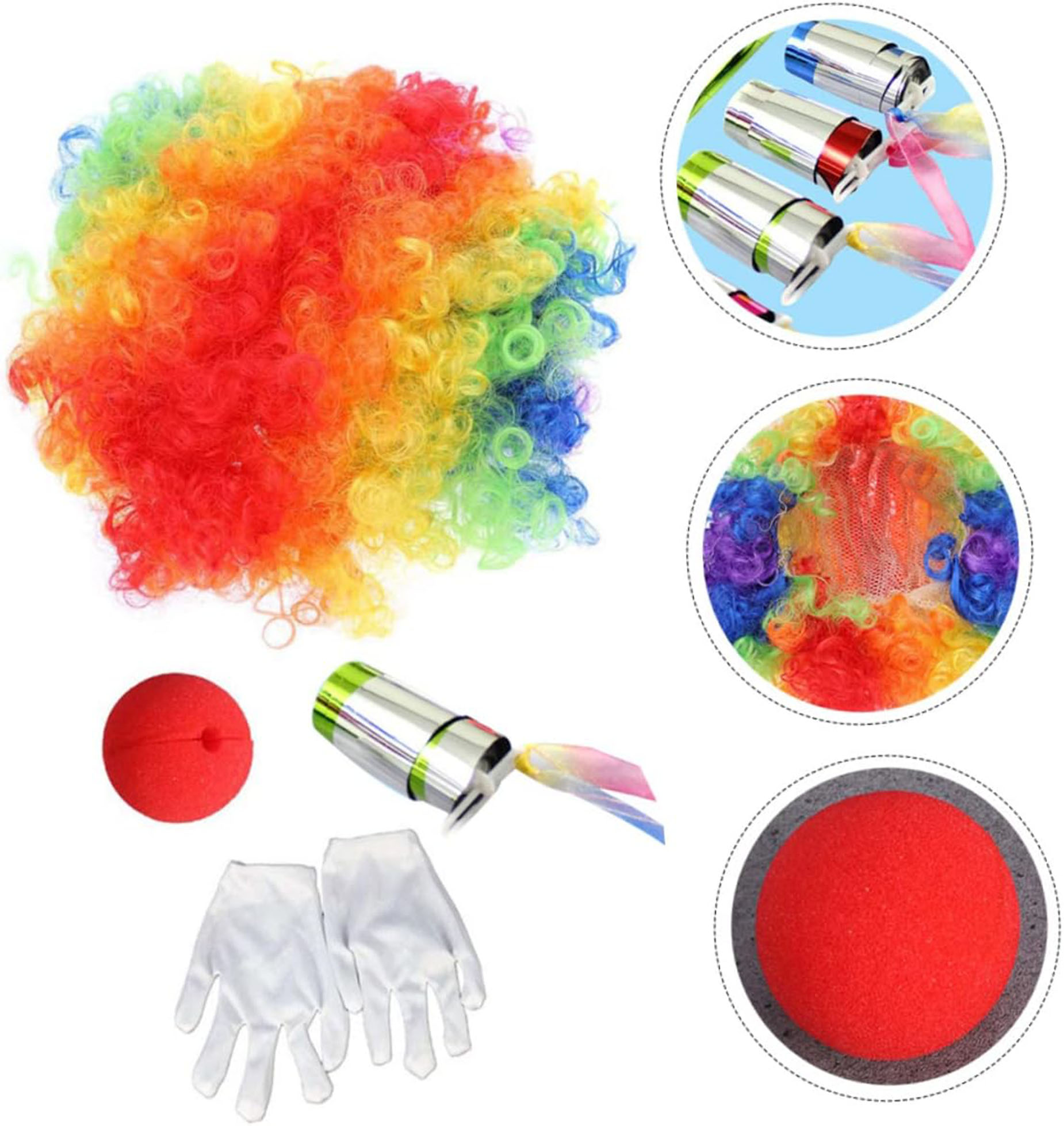 PALYAÇO SAÇ, BURUN, ELDİVEN, BASTON SETİ 4’LÜÜrün Özellikleri4 parçadan oluşan palyaço kostüm setiRenkli palyaço saçı, burun, eldiven ve baston içerirYüksek kaliteli malzemelerden üretilmiştirKostüm partileri ve eğlenceli etkinlikler için idealdirPratik ve rahat kullanımPaket İçeriği1 adet Palyaço Saçı1 adet Palyaço Burun1 çift Palyaço Eldiven1 adet Palyaço Bastonu
