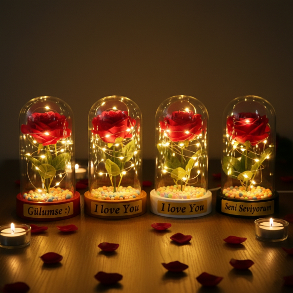 RENKLİ TOPLU LEDLİ GÜL FANUS